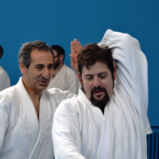 Joaquín con unos ejercicios prácticos de respiración y de fusión, sirven de prólogo para que Nima nos deleite con ejercicios y técnicas que nos ayuda a coger el centro de uke proyectándolo o controlándolo según corresponda.